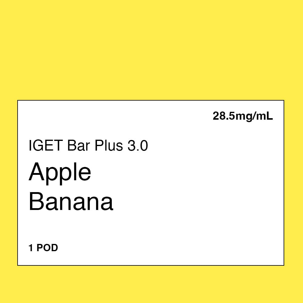 IGET Bar Plus 3.0 Pod – Apple Banana• Premium nicotine salt eLiquid• Up to 10,000 puffs per pod• For use with the IGET Bar Plus V1, V2, & V3 device