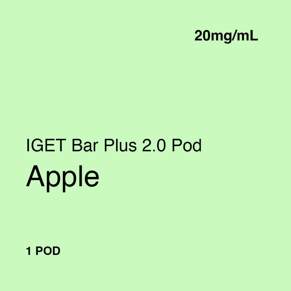 IGET Bar Plus Apple• Nicotine salt eLiquid• For use with the IGET Bar Plus V1, V2, & V3 device