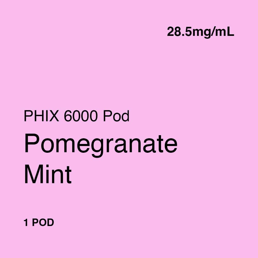 PHIX 6 Pomegranate Mint Pod• 6mL prefilled eLiquid pod• Premium nicotine salt eLiquid• eLiquid made in USA• For use with the PHIX 6000 Device