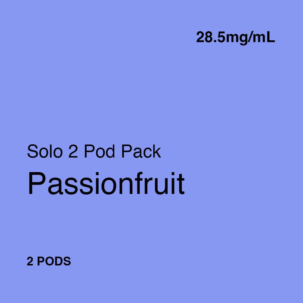 Shop the Solo Passionfruit Pods•  Each pack contains 2 pods• Nicotine salt eLiquid• For use exclusively in the Solo Device