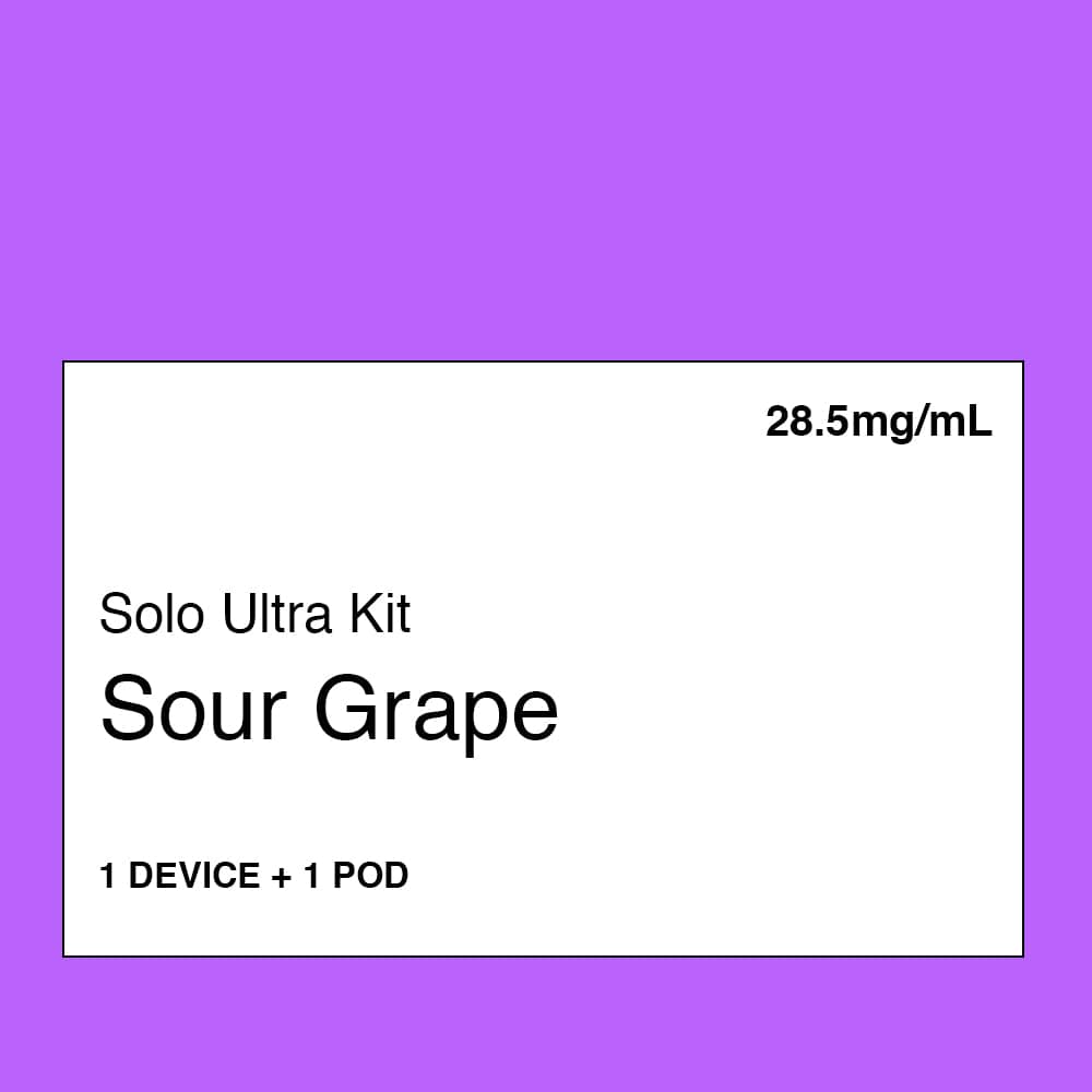 Shop Solo Ultra Kit – Sour Grape• Nicotine salt eLiquid• Integrated mesh coil• Dual Power Modes (12W & 20W)• 28.5mg/mL nicotine strength• Intelligent display screen shows battery and e-liquid levelsWhat's in the box:1x Solo Ultra device1x 15mL Solo Ultra pod